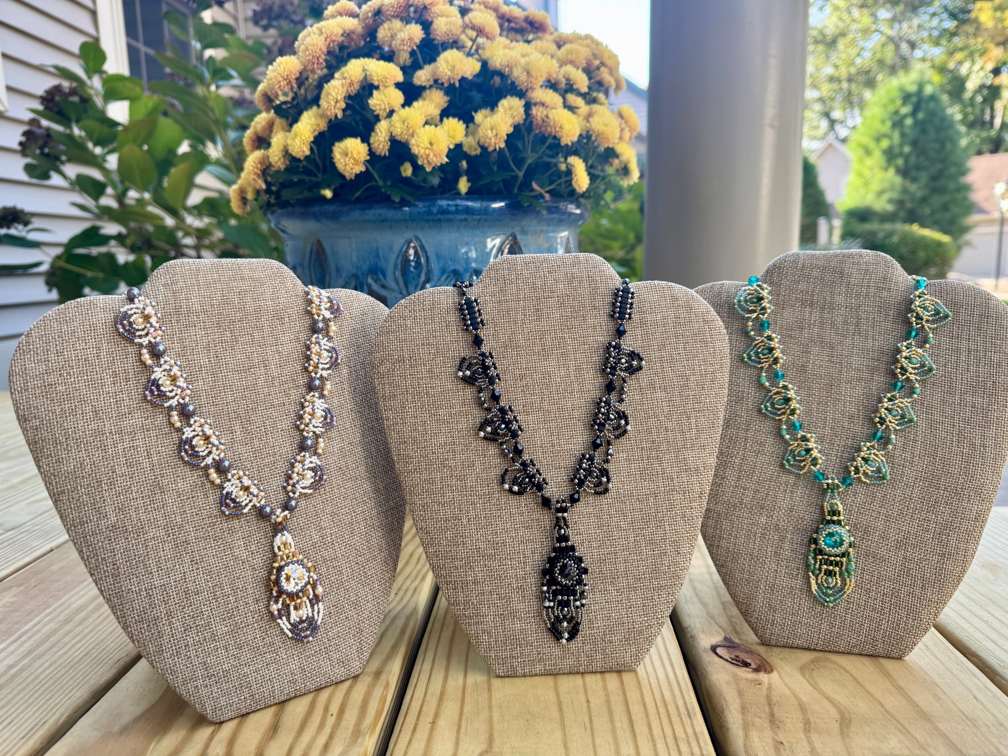 weaving techniques such as brick and peyote stitch to create this necklace continuously and