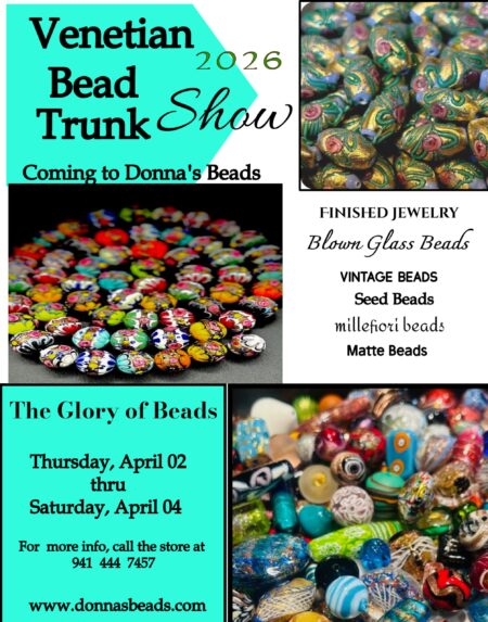 The Glory of Beads is coming to Donna’s Beads for a three-day Venetian Glass Trunk Show you do not want to miss.