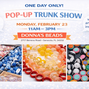 Join us for a special one-day-only Pop-Up Trunk Show at Donna’s Beads! Monday, February 23 only! 11am to 3pm Ava from the Whole Bead Show will be bringing her fantastic selection featuring vintage and vintage-inspired beads, unique finds, and inspiration you won’t see every day. She will be showing and selling her signature vintage and...